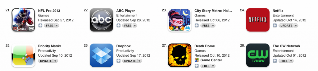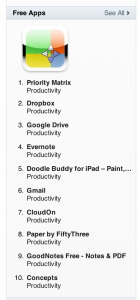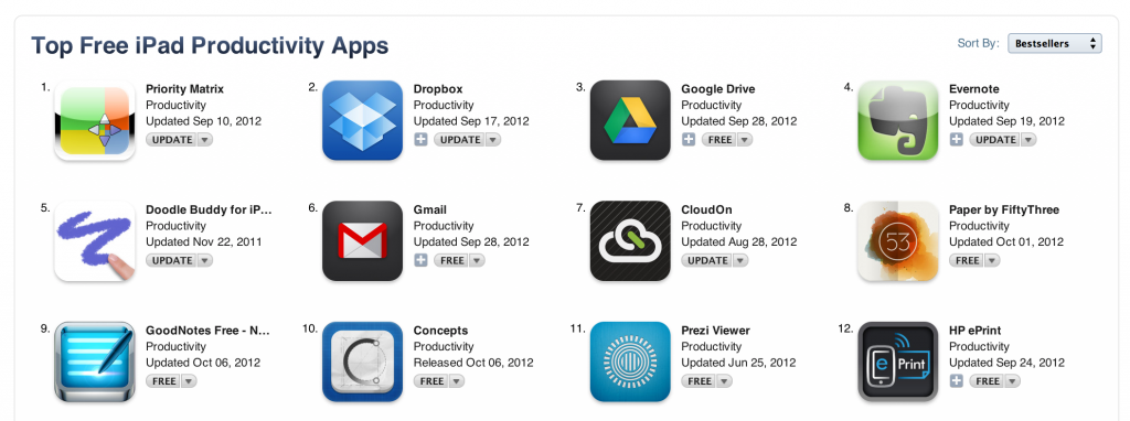 We’re super excited to announce that right now (October 16, 2012), Priority Matrix is the #1 productivity app in the US iPad app store. We’re also #1 in 10 other countries including China, Taiwan and Canada, and top 10 productivity in more than 50 countries across the world.