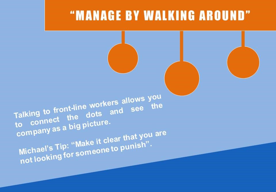 Talking to the front line workers can be very beneficial “because what may not seem important to them may be important to you.” Speaking with these employees will allow you to “connect the dots” and see the company as a big picture.