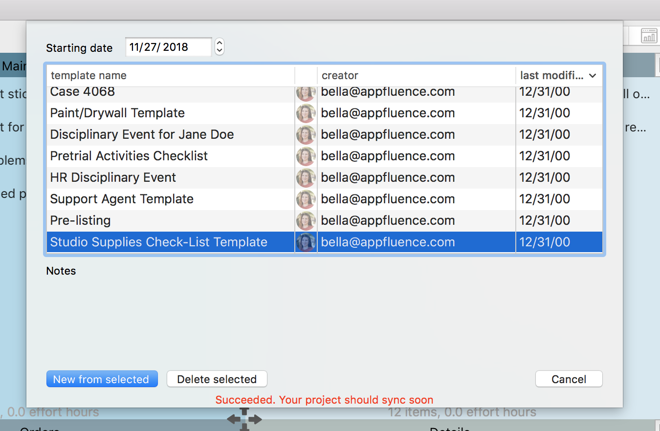 3) When you want to create a project from the process template. Simply click the plus sign and select ‘new project from template’: