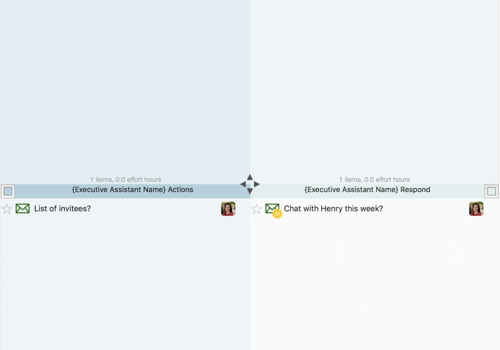 Executive assistants sync with their executives in a shared Priority Matrix project. Instead of spending time verbally checking for changes -- they can watch their boss rearrange priorities, push calls, and make notes at their convenience.
